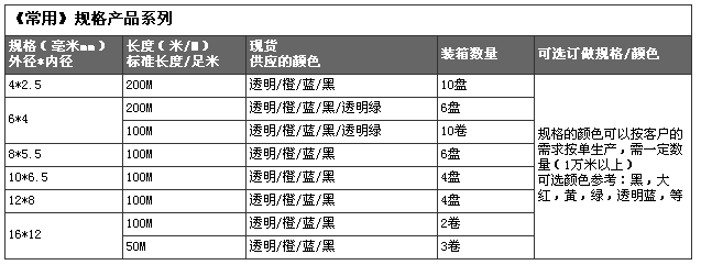詳細(xì)信息 >>PU氣管規(guī)格